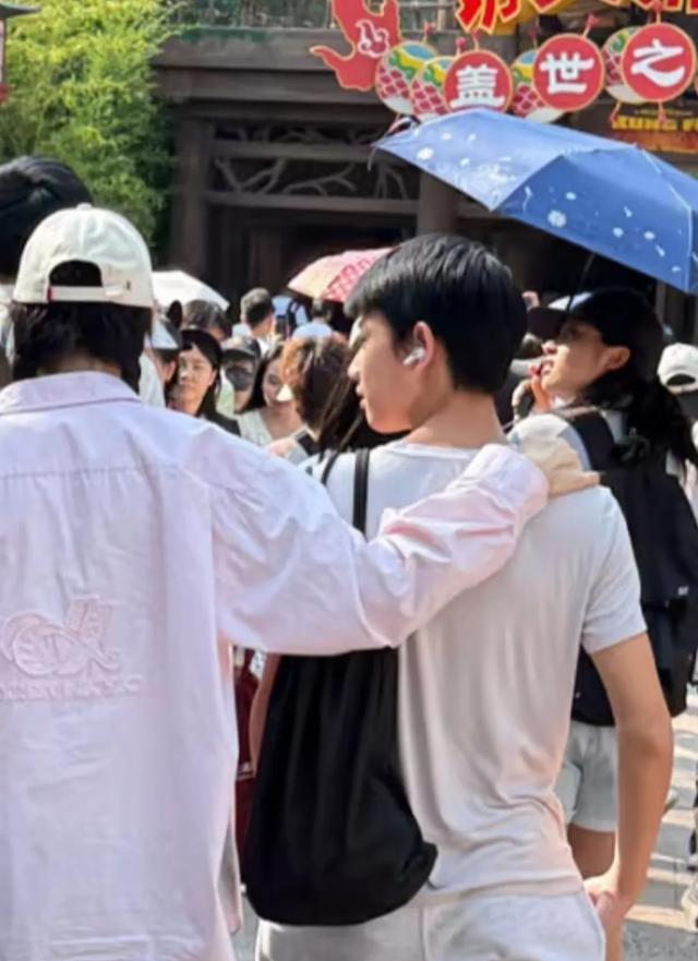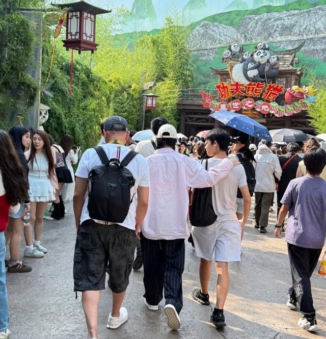 16岁的牛魔王相当乖巧,和爸妈去聚餐,也是乖乖提包在旁边等。现在和妈妈胡静去游乐园,也是乖乖站胡静旁边,让妈妈抱着,打扮和爸爸朱兆祥一样,很低调。